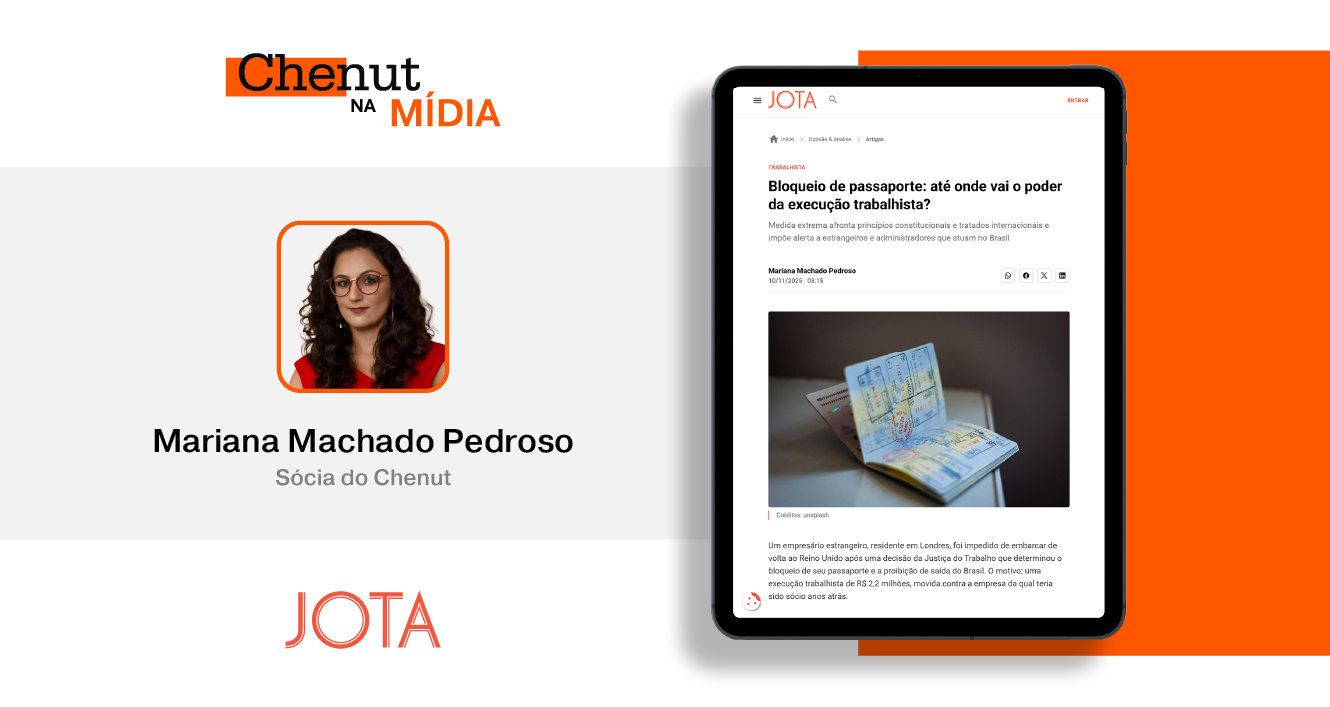 Mariana Machado Pedroso, sócia do Chenut, escreveu o artigo “Bloqueio de passaporte: até onde vai o poder da execução trabalhista?”, recentemente publicado no JOTA.