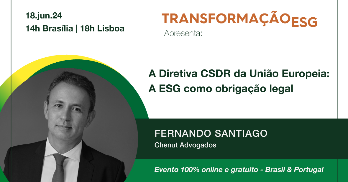 Participe do próximo evento de aceleração do projeto Transformação ESG que terá como tema: A Diretiva CSDR da União Europeia: A ESG como obrigação legal.