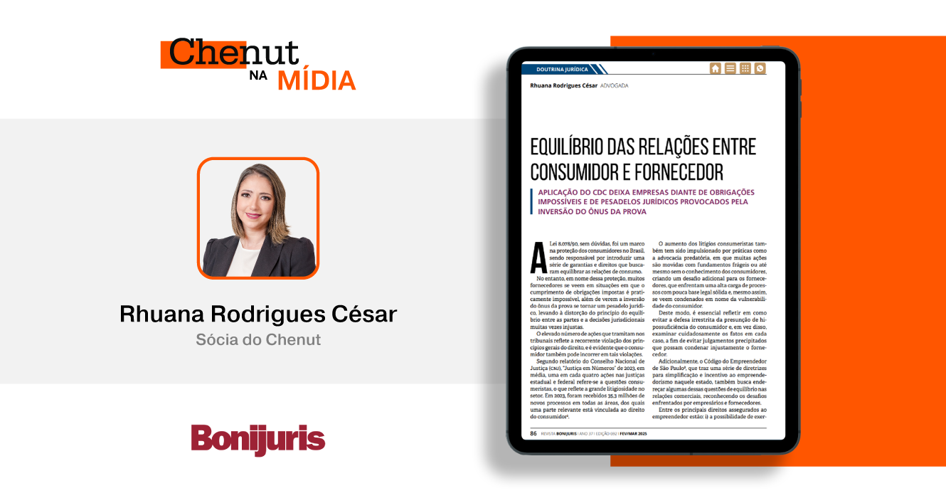 A sócia do Chenut, Rhuana Rodrigues César, teve seu artigo “Equilíbrio das relações entre consumidor e fornecedor” publicado na Revista Bonijuris.