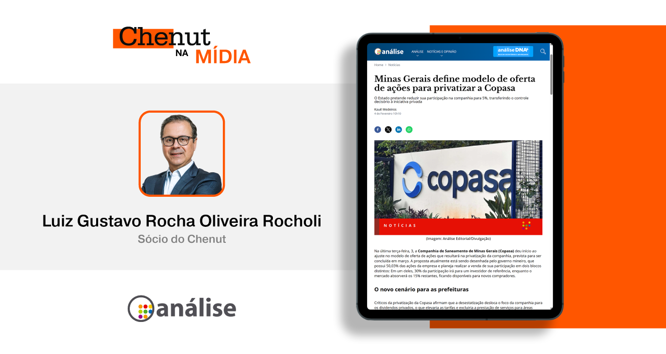 Luiz Gustavo Rocholi, sócio do Chenut, foi entrevistado pela Análise na reportagem “Minas Gerais define modelo de oferta de ações para privatizar a Copasa”.
