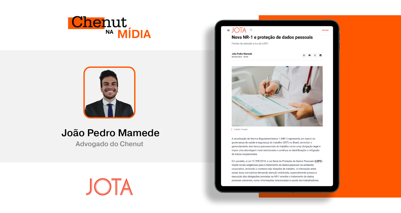O artigo “Nova NR-1 e proteção de dados pessoais: pontos de atenção à luz da LGPD”, de autoria do advogado do Chenut, João Pedro Mamede, foi publicado no portal JOTA.