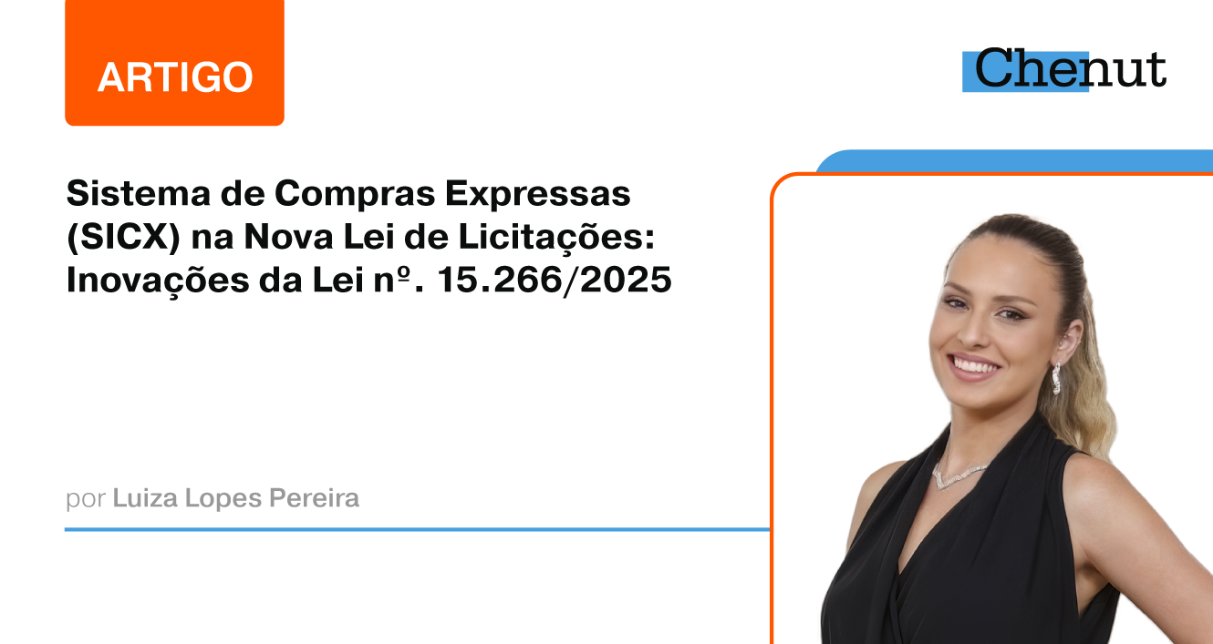 A Lei nº 15.266/2025 introduziu importantes inovações à Lei nº 14.133/2021, ao instituir o Sistema de Compras Expressas (SICX) como ferramenta oficial para aquisição de bens e serviços comuns padronizados pela Administração Pública. Trata-se de uma etapa relevante no movimento de modernização das compras públicas, alinhada à digitalização e à busca por maior eficiência no gasto público.