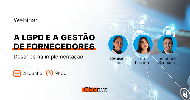 Nossos sócios Fernando Santiago Júnior e Iara Peixoto Melo, participarão de um webinar, no próximo dia 28 de junho, sobre os desafios na Gestão de Fornecedores frente à Lei Geral de Proteção de Dados (LGPD). A mesa terá a ilustre participação da head de Proteção de Dados da empresa da Companhia Paulista de Força e Luz (CPFL), Denise Lima.